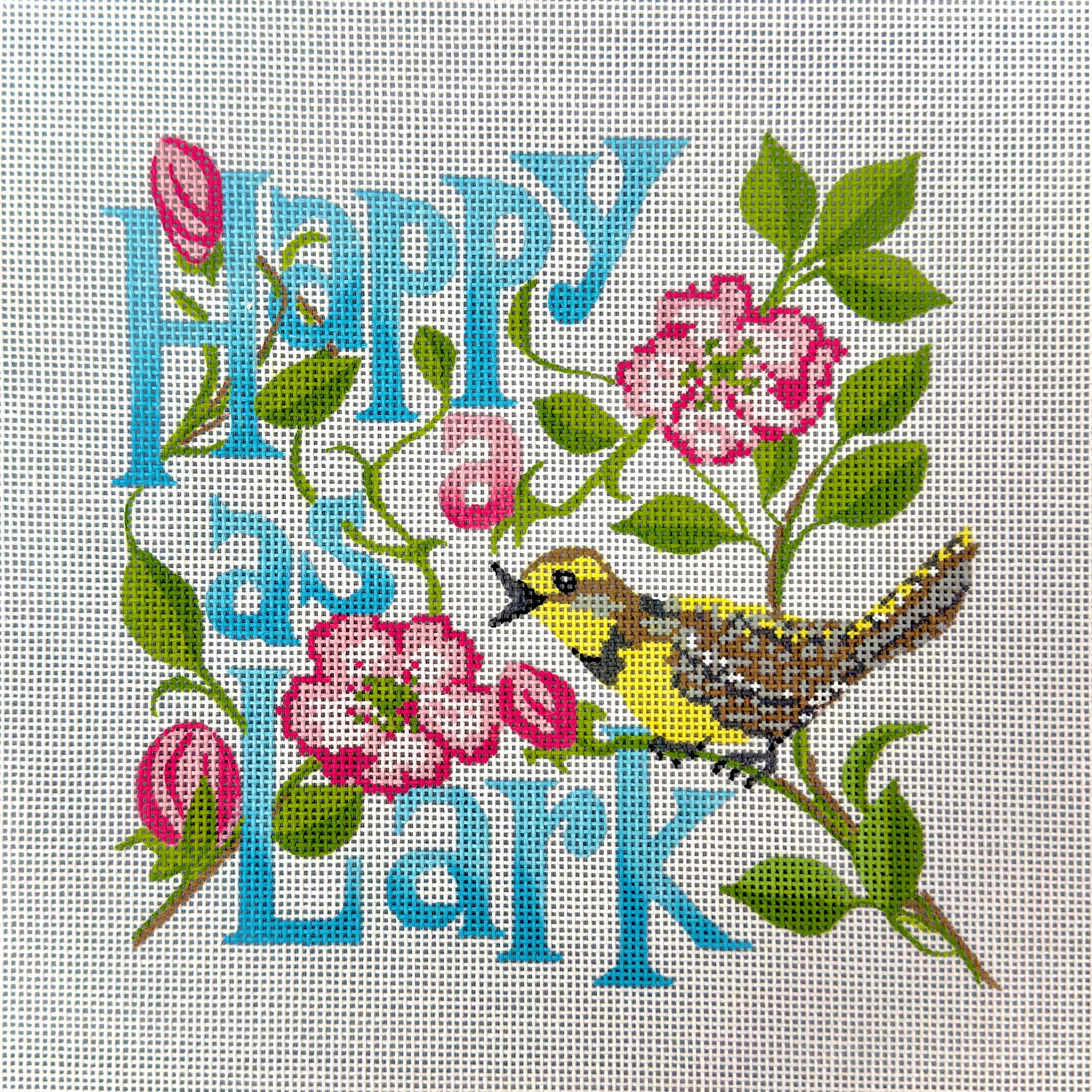 PLM-TSG13, Happy as a Lark, 13 mesh canvas, size 5'' x 8'' inches