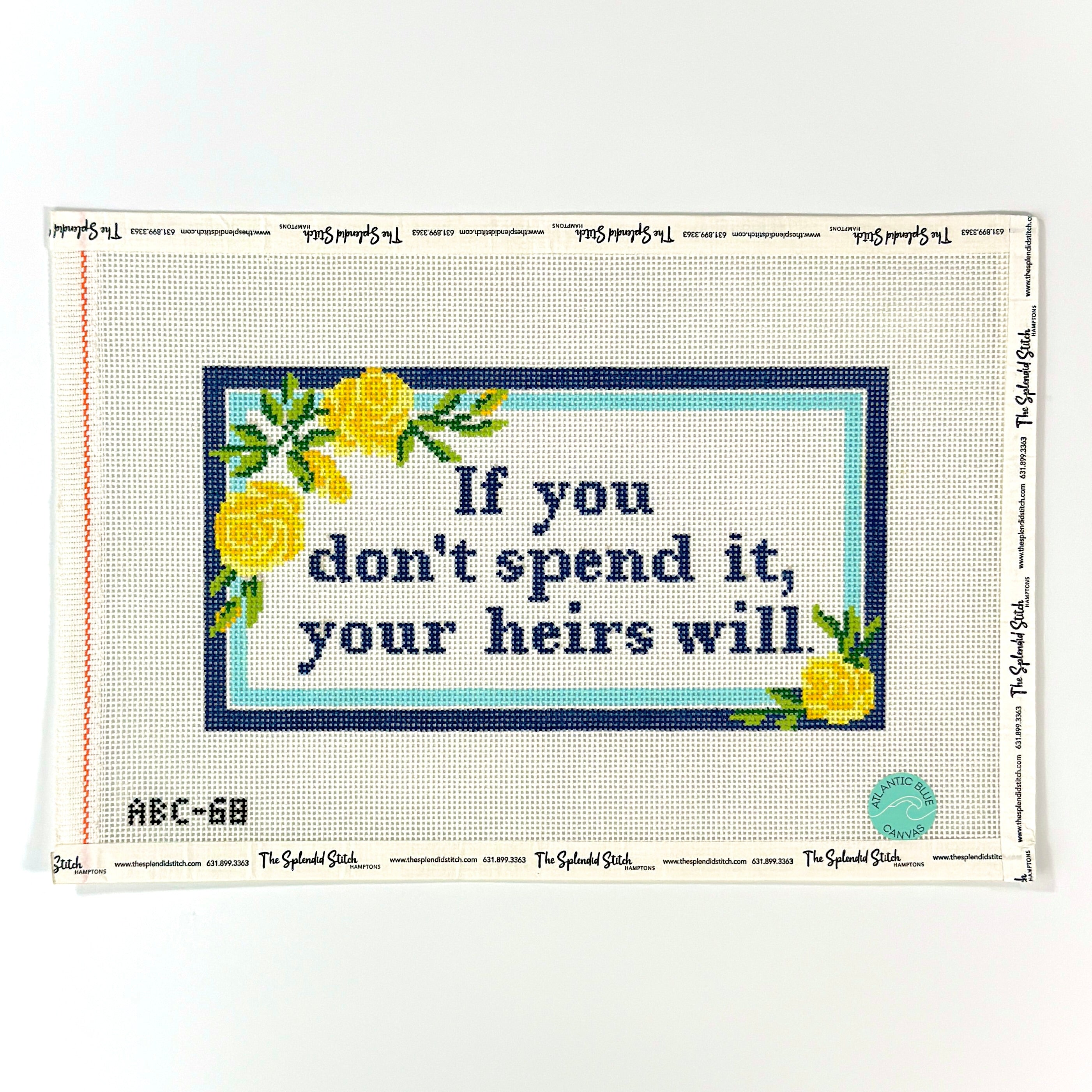 ABC-68, Heirs- If you don't spend it, 13 mesh canvas, size 9 3/4''' x 5 1/4'' inches
