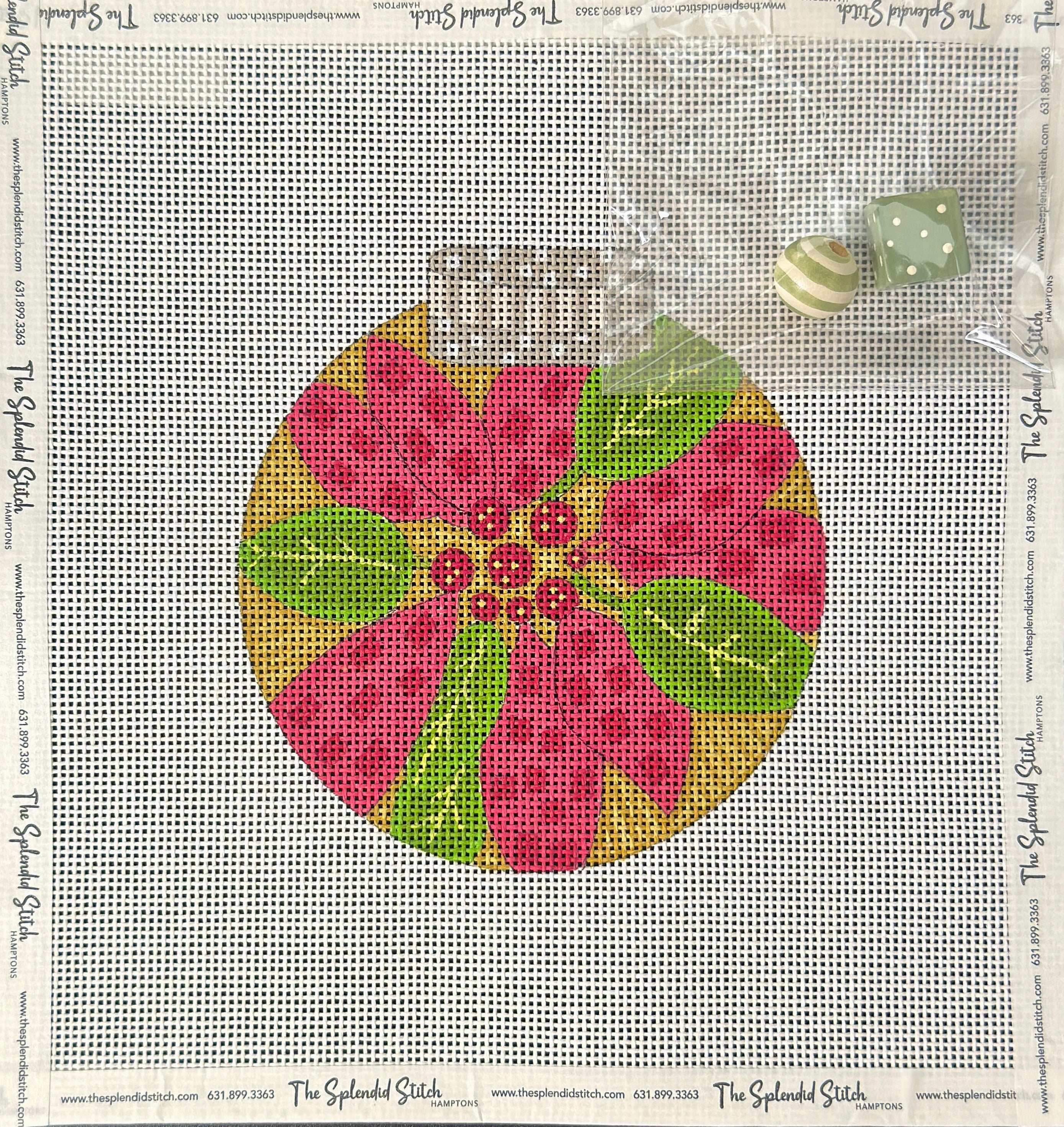 DTO-283, Poinsetia w/embellishment, 13 mesh canvas, size 5 inches round
