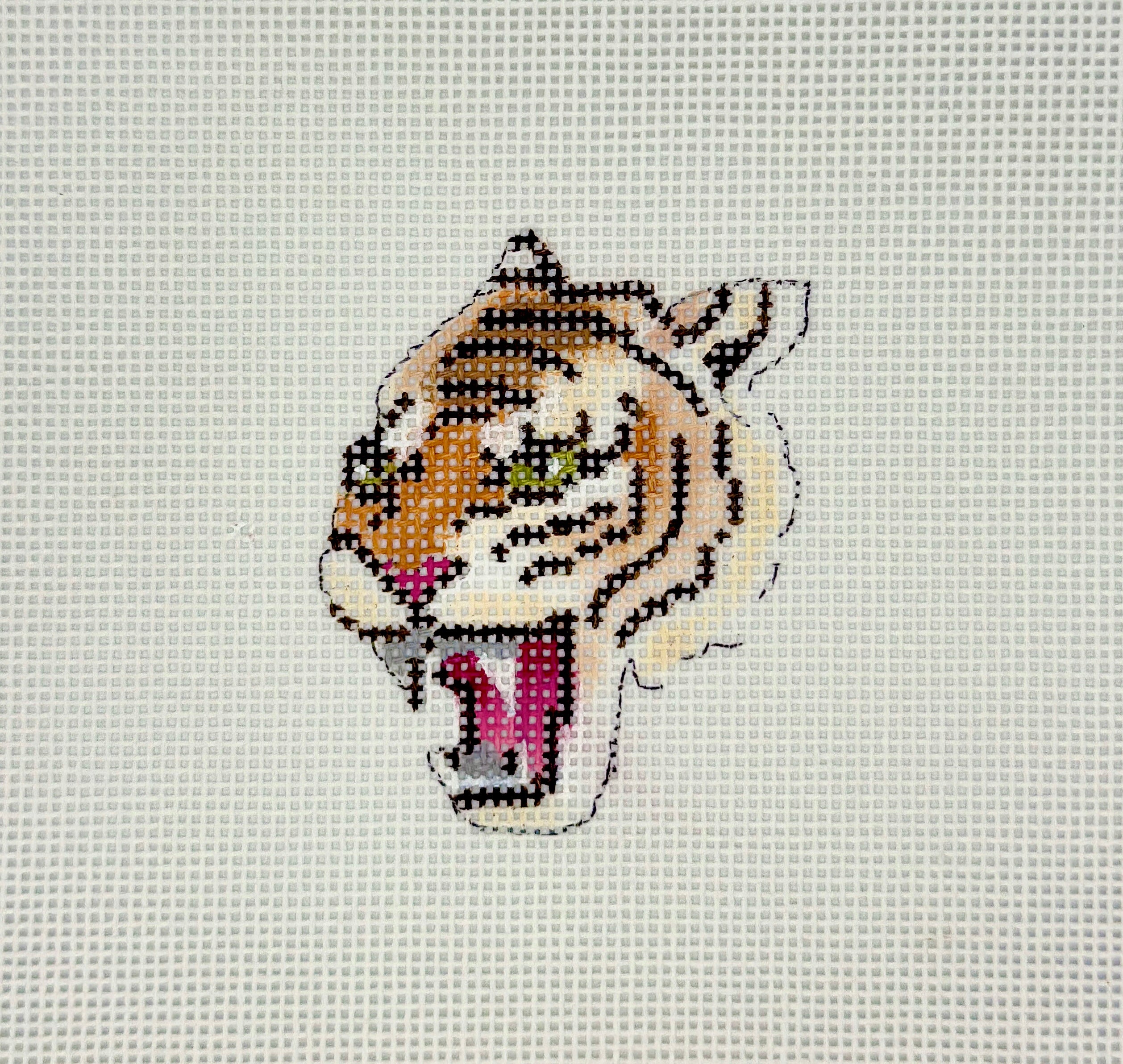COP-JW445, Tiger Head Charm, 18 mesh canvas, size 2'' x 2.5'' inches