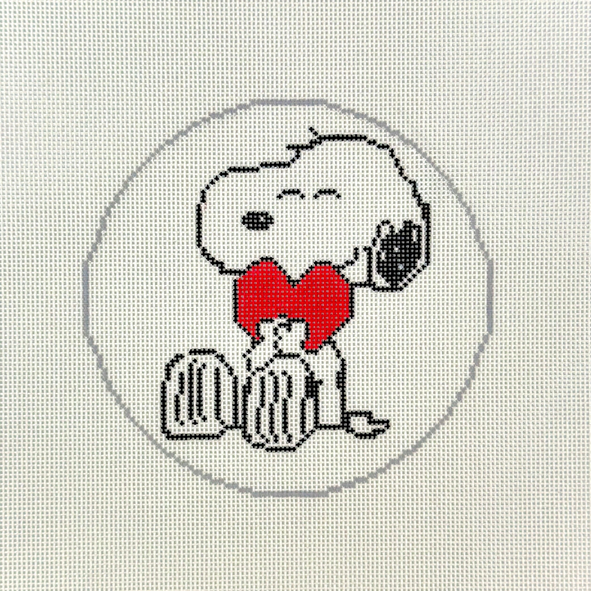 OFN-EV04, Snoopy Hugging Heart, 18 mesh canvas, size 5 inches round