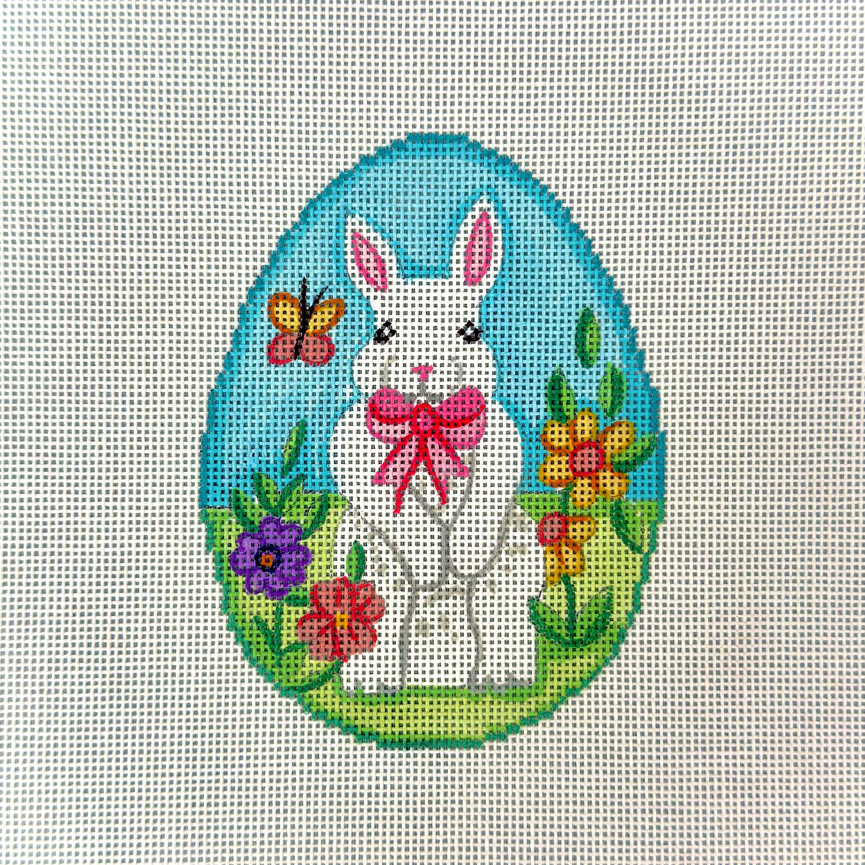 ALX-EG1, White Rabbit Egg, 18 mesh canvas, size 4.5'' x 3.5'' inches