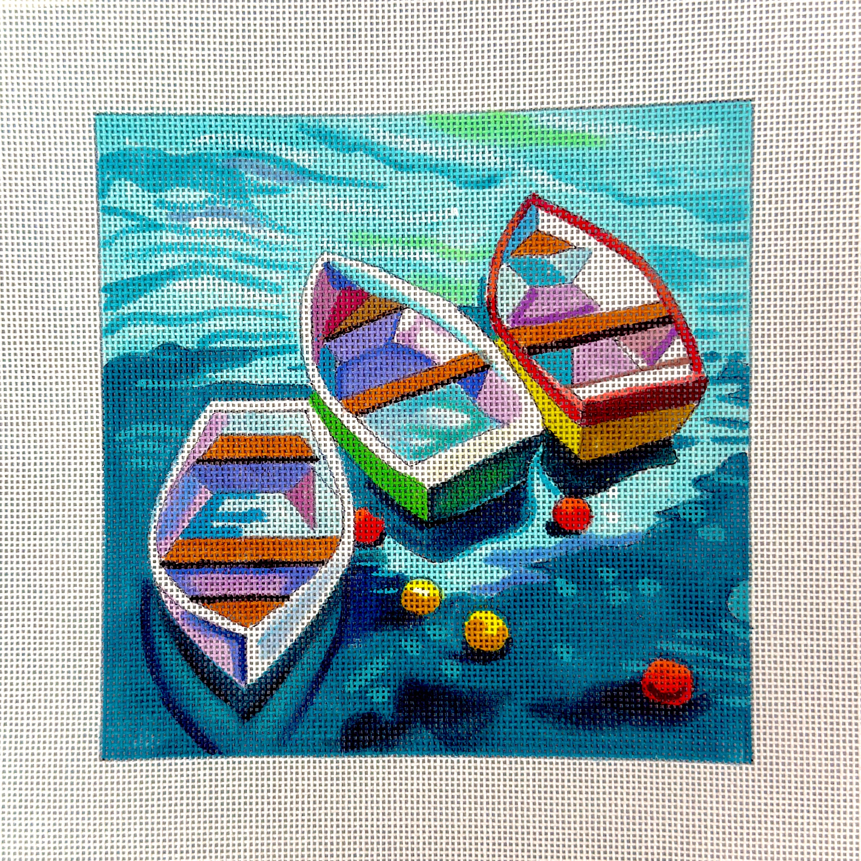 COP-MC495, 3 Rowboats with Buoys, 18 mesh canvas, size 6.25'' x 6.25'' inches