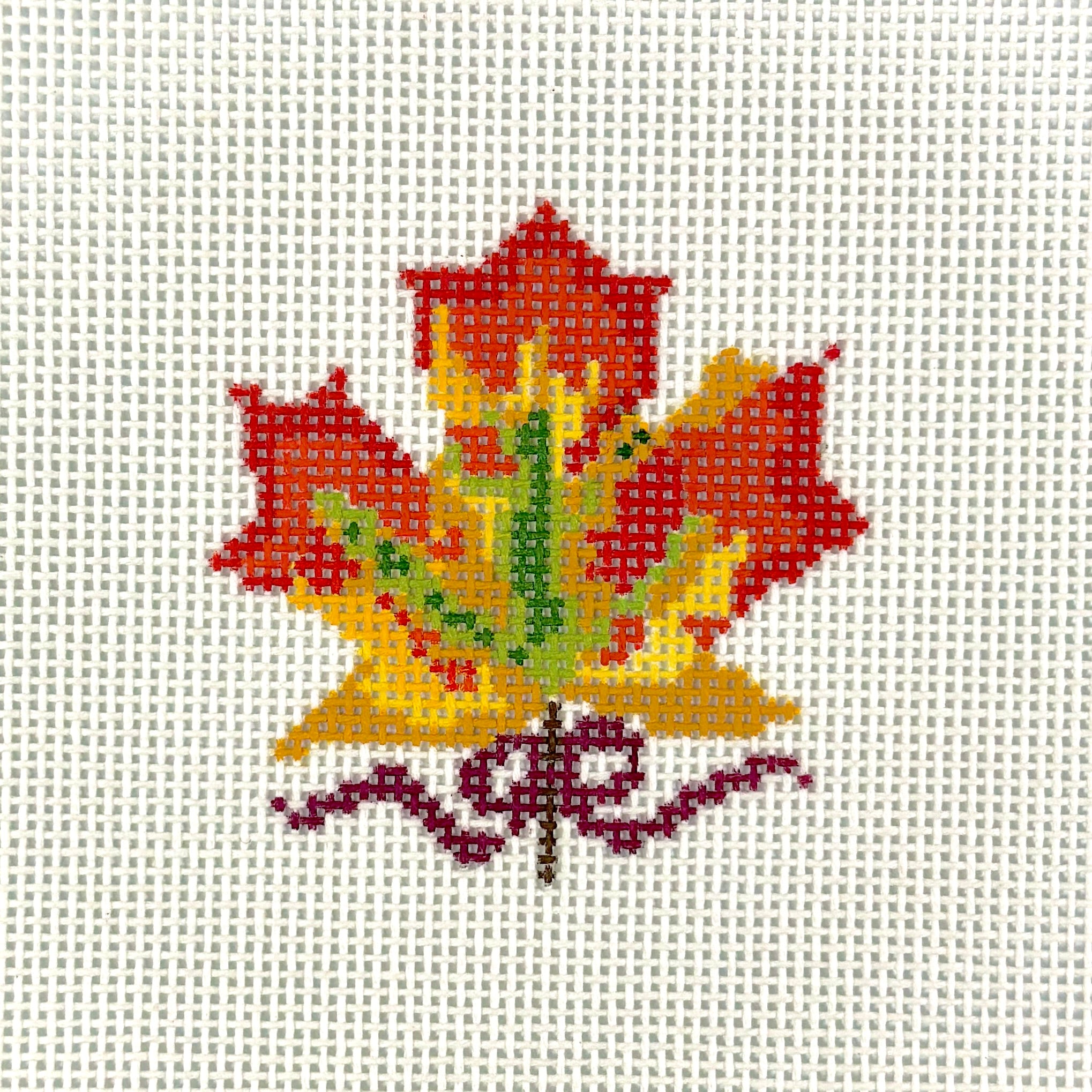 KCN-KCD1310, Autumn Leaf Ornament, 13 mesh canvas, size 3'' x 3'' inches
