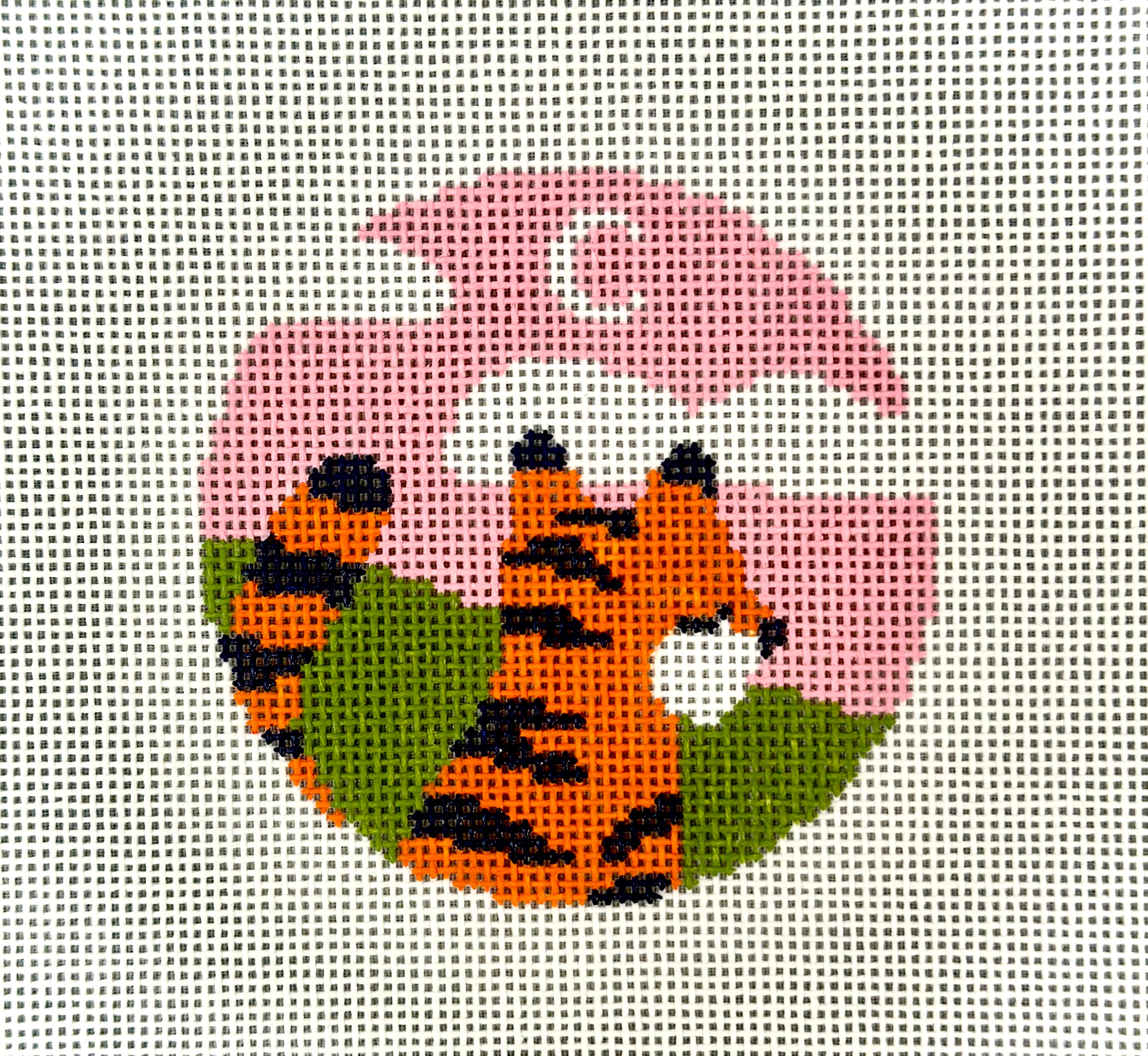 SAS-ROSE012, Sitting Tiger Round, 18 mesh canvas, size 3 inches round