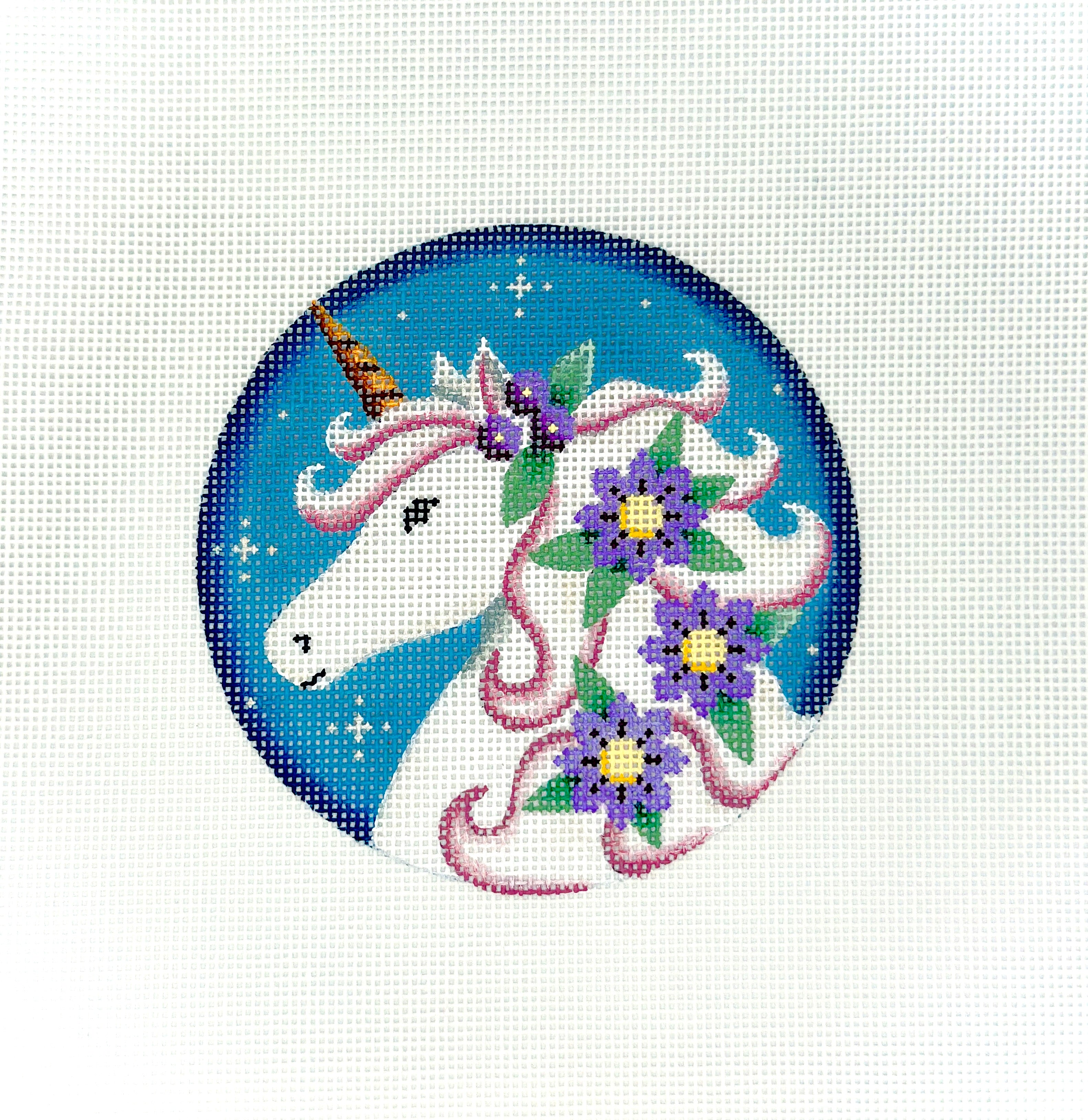 RBW-1075b, Spring Unicorn, 18 mesh canvas, size 4 1/4 inches round