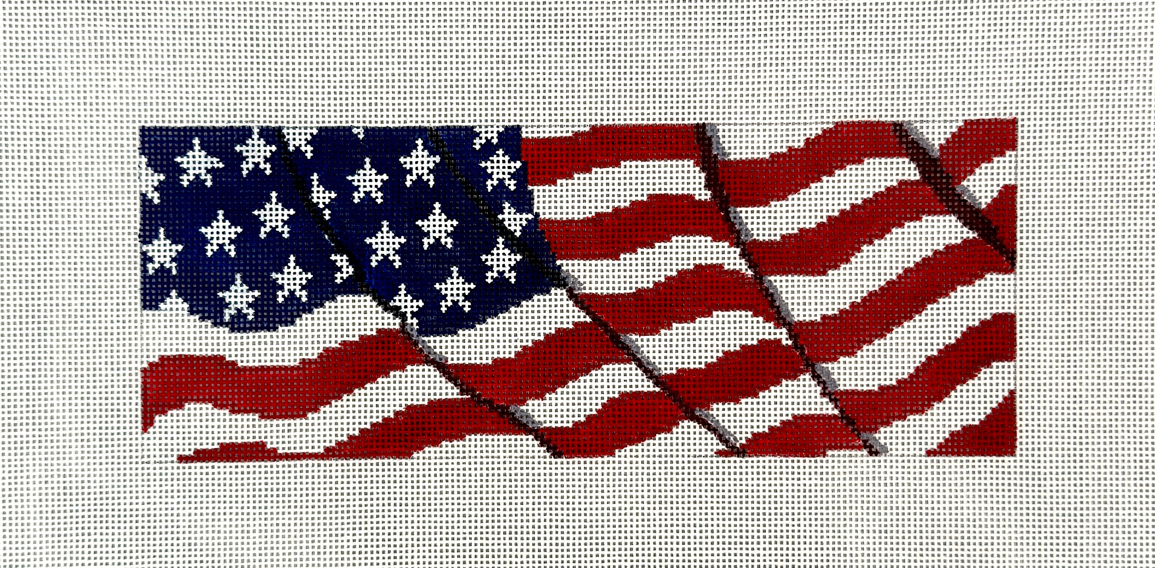 ETN-W005, Wavy American Flag, 18 mesh canvas, size 8.5'' x 3.25'' inches