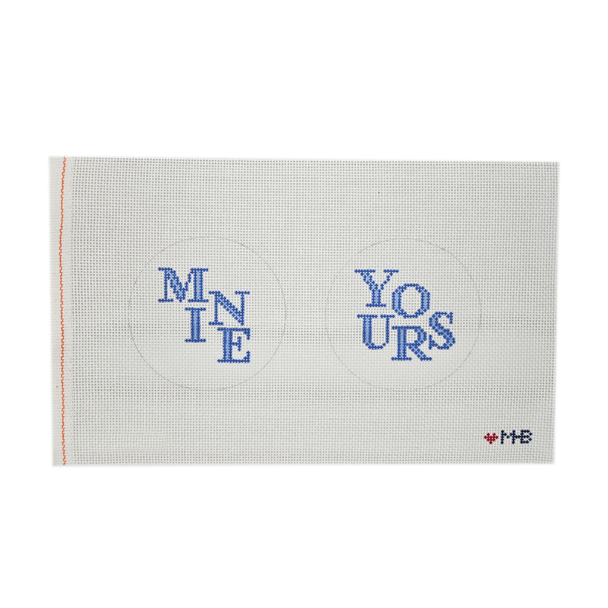 LMHB-ENT110-1, Yours and Mine Coaster Pair, 13 mesh canvas, size 4 pair inches round